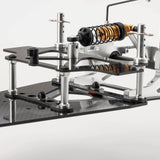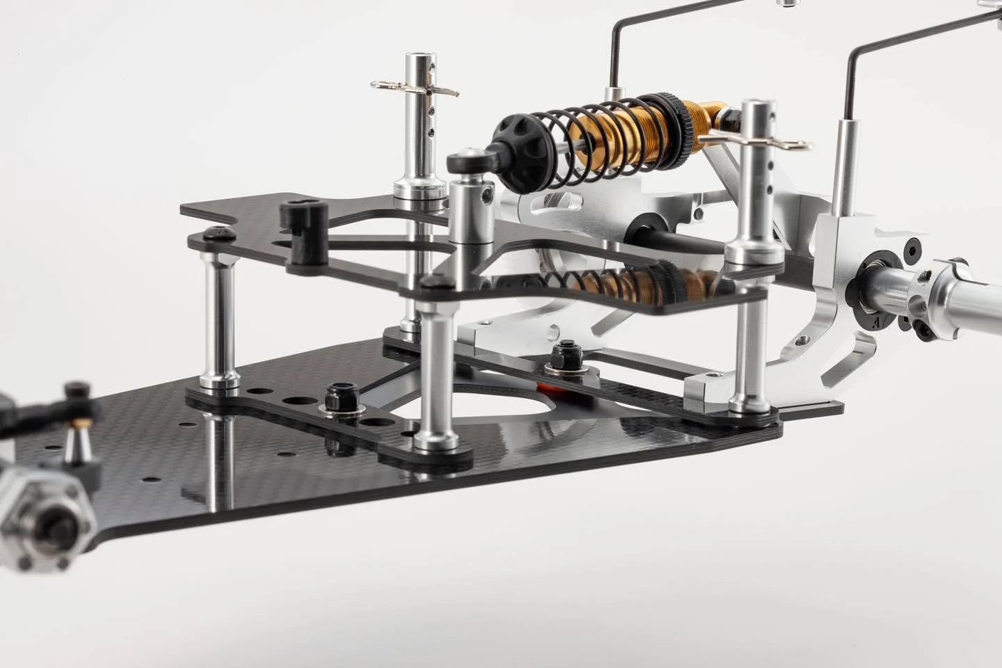 • CNC Machined Carbon Fiber Main Chassis, equipped with kingpins and Rear A-arm Suspension.