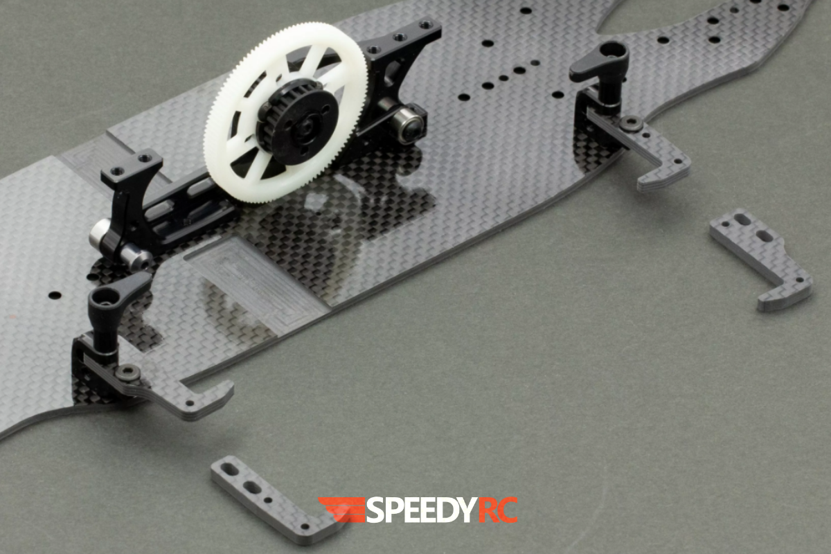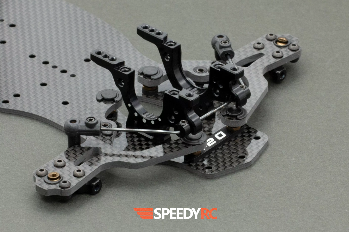 - Interchangeable front and rear upper aluminium bulkheads. Front caster 4/5 deg, rear caster 0/1 deg adjustable by different orientation of bulkheads.