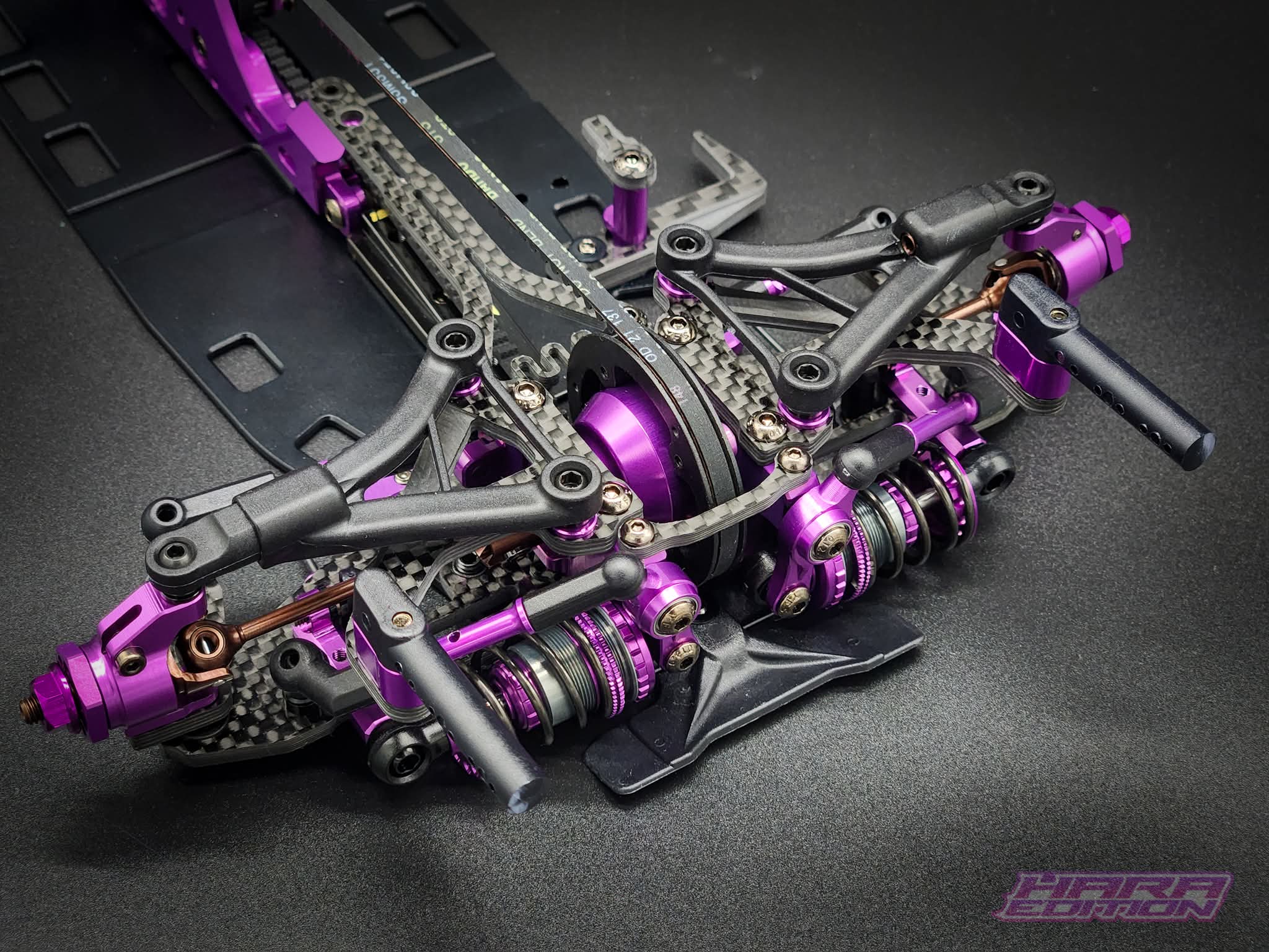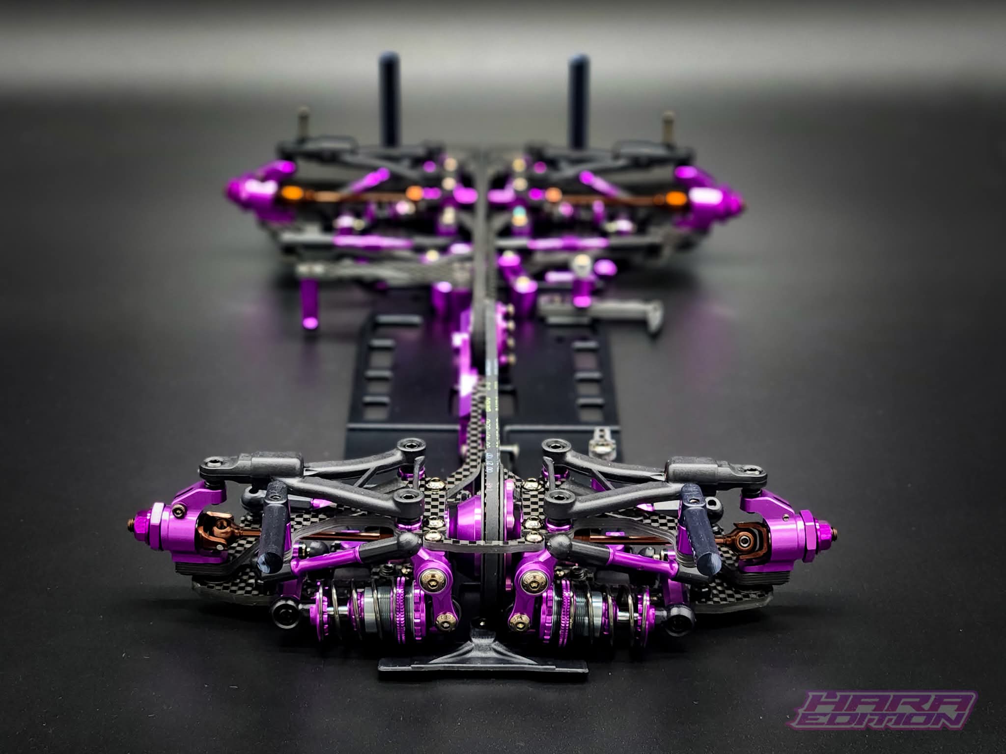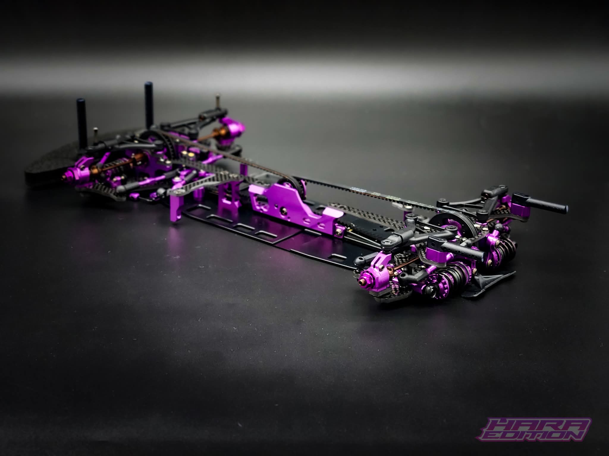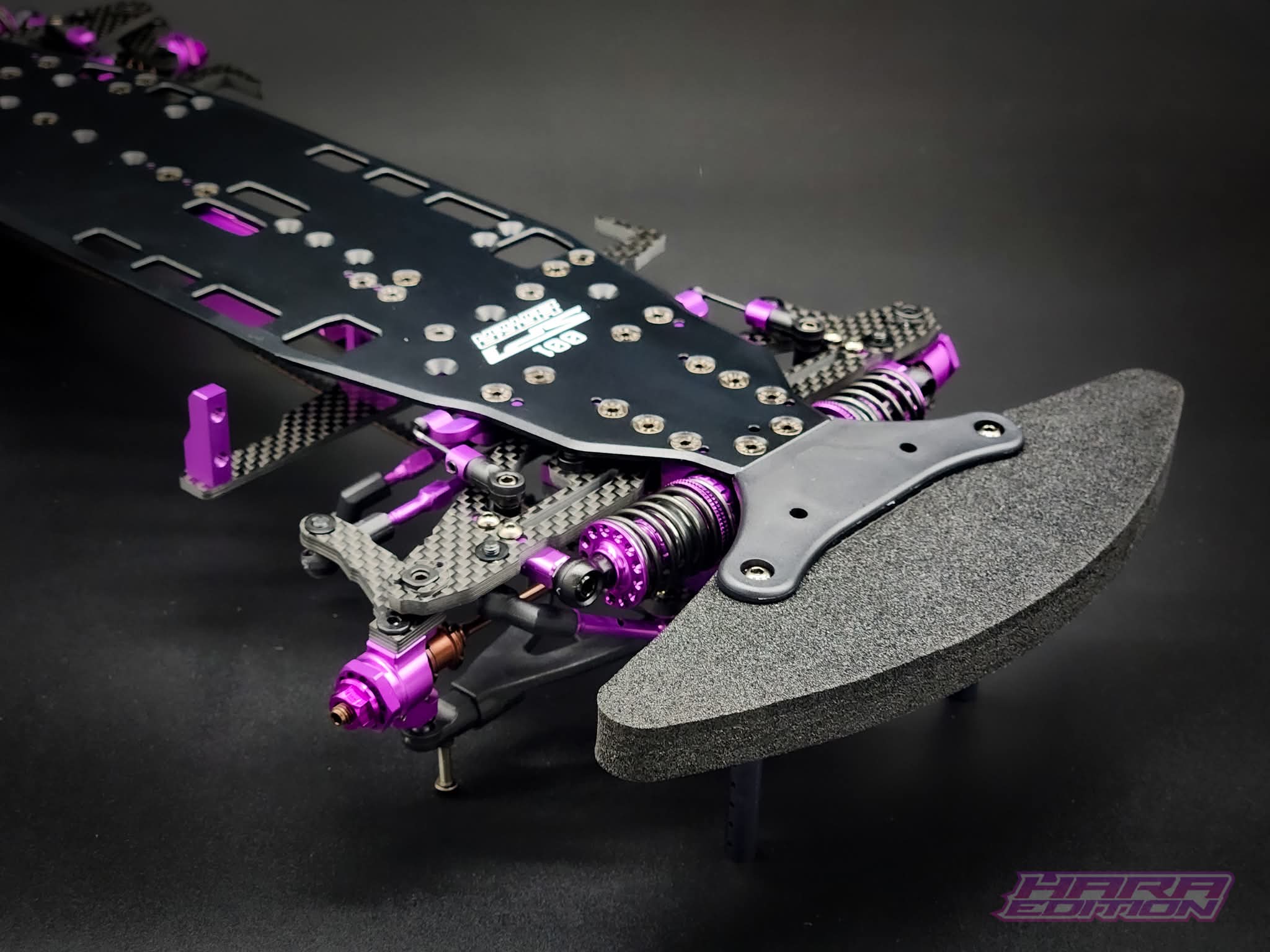 To celebrate the coming together of Hara and RC MAKER, we decided to make this incredibly limited edition kit in Hara's signature purple colour. We have put a lot of effort into the details of this kit, to give you something to admire on the shelf, or on the track.